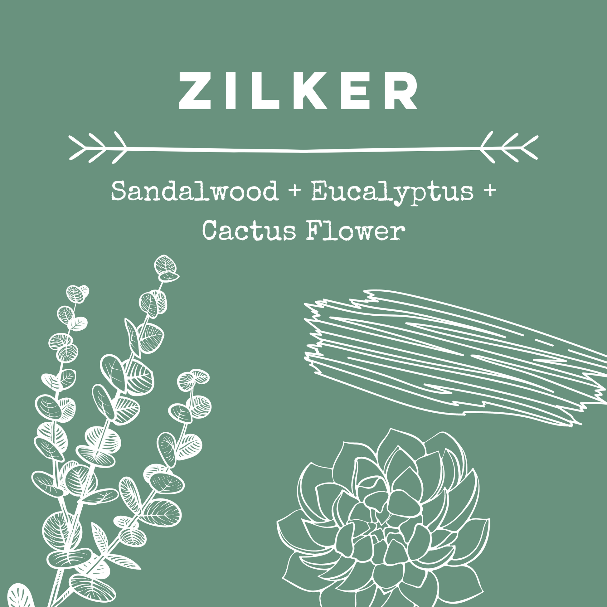 Zilker features earthy sandalwood, light cactus flower and minty eucalyptus - all of which come together to form a zen-like fresh scent. Sit back, relax, and enjoy!